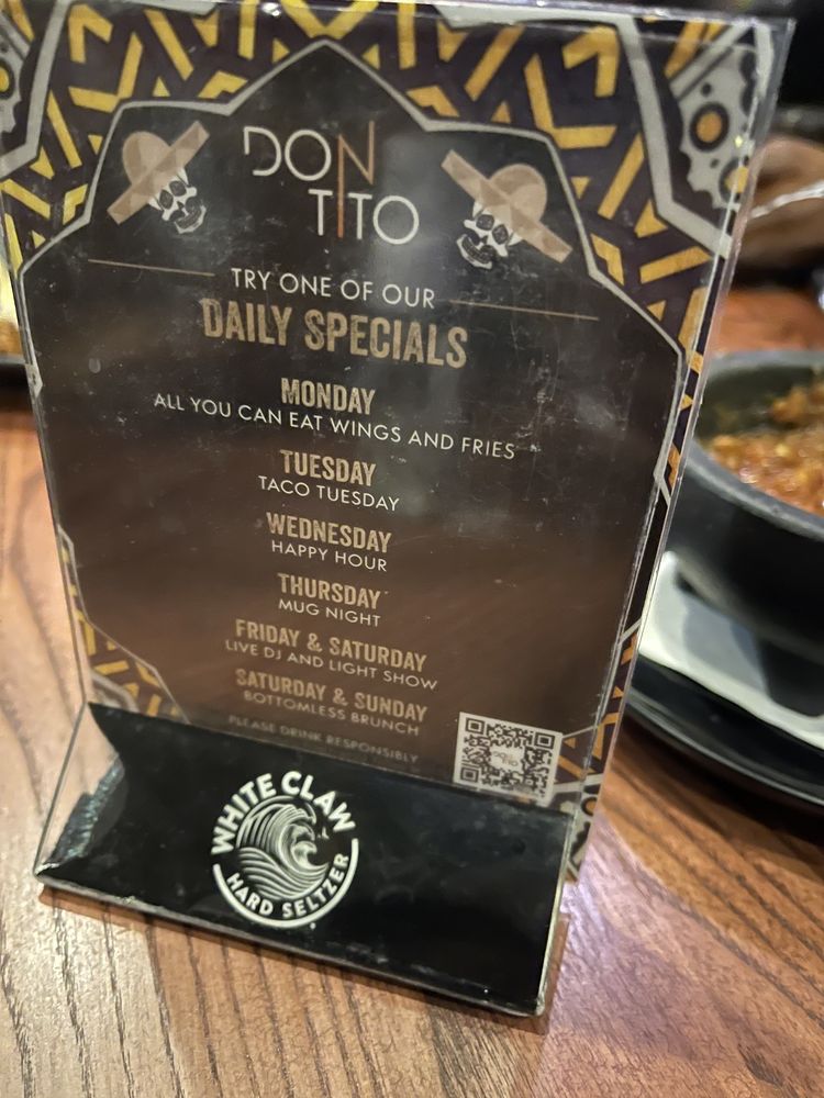 Don Tito in Arlington, VA is a vibrant Mexican bar with a wide range of offerings. From brunch tacos and crispy chicken wings to flavorful tacos like the Fried Avocado and Spicy 'Shroom, their menu is diverse and satisfying. Customers rave about the bold flavors and generous portions, making it a must-visit spot for food and drinks. The rooftop area adds a magical touch to the experience, where you can enjoy the view and relaxing vibes. The happy hour specials, including $2 tacos and delicious queso dip, make it a favorite for locals looking for a great deal. With friendly staff, a lively atmosphere, and top-notch cocktails, Don Tito has something for everyone looking to indulge in Mexican cuisine.